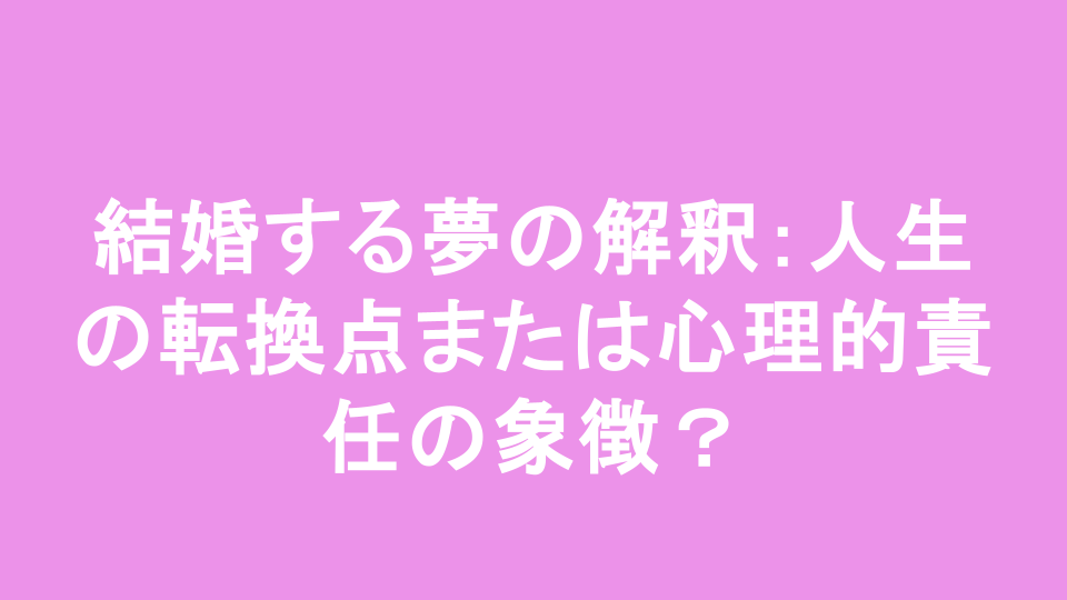 #結婚, #夢, #解釈, #心理, #文化, #人生, #象徴, #体験, #自己探求, #新しい始まり