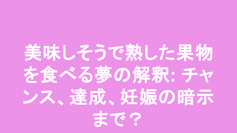 #夢占い, #果物, #豊かさ, #妊娠, #文化, #解釈, #体験談, #ポジティブ, #機会, #成功