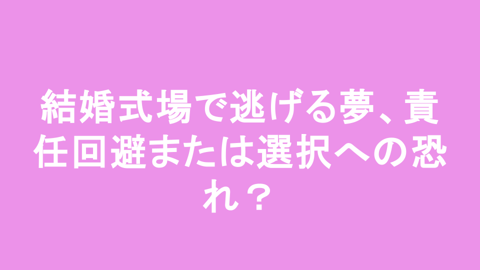 結婚式場から逃げる夢は、一般的に「責任回避」や「選択に対する恐怖」を象徴しています。結婚という大きな決断に対する不安や、周囲の期待に応えられないことへの恐れが反映されているのかもしれません。この夢を見ることで、自分自身の内面と向き合う機会が得られるのです。