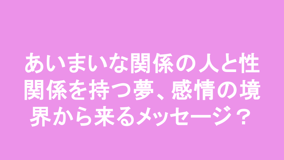こんにちは、皆さん。最近、あいまいな関係の人と性行為をする夢を見たことはありませんか?私自身、何度かそういった夢を経験したことがあり、そのたびに不安や戸惑いを感じました。夢の中での出来事は、現実の人間関係や感情にどのように影響を与えるのか、そしてそれが私たちに何を伝えようとしているのか、考えさせられます。今回は、そんな夢の解釈について掘り下げてみたいと思います。