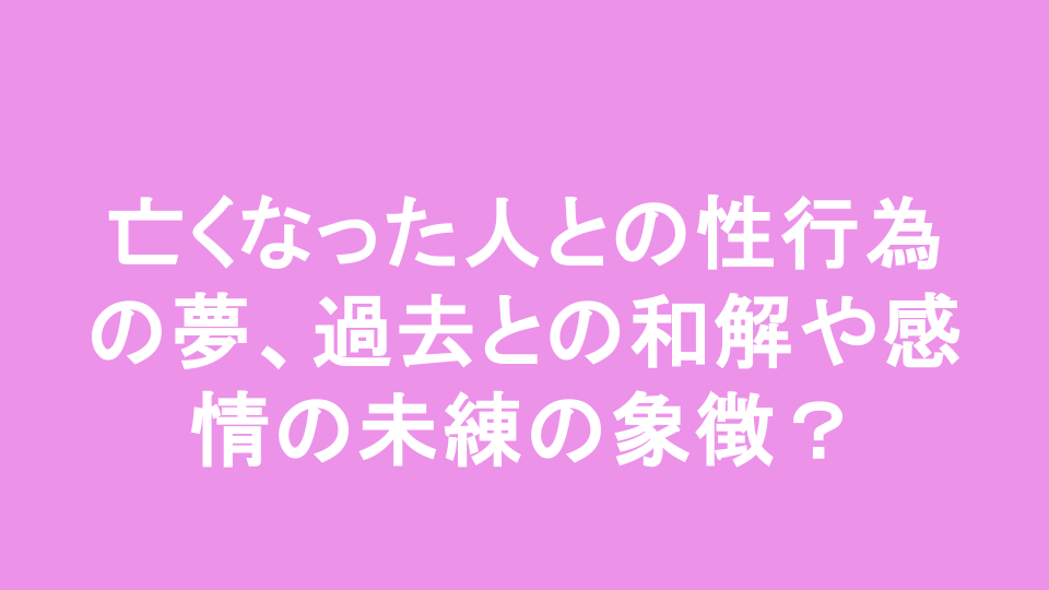夢の中で亡くなった人と過ごすという体験は、非常に複雑で深い感情を伴うものです。特に、性行為の夢は、私たちの心の奥深くにある未解決の感情や過去との和解を象徴することが多いとされています。私自身も、最近このような夢を見て、いろいろな思いが巡りました。