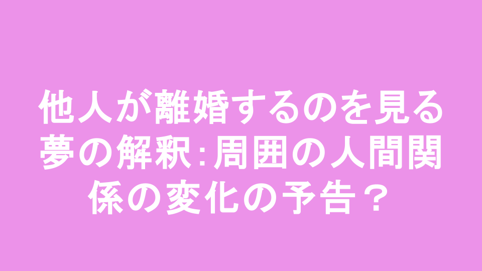 夢の中で他人が離婚する場面を目撃することは、非常に印象的で時には不安を感じさせるものです。実は、こうした夢には深い意味が隠されていることが多いのです。周囲の人間関係や自分自身の感情を見つめ直すきっかけになるかもしれません。