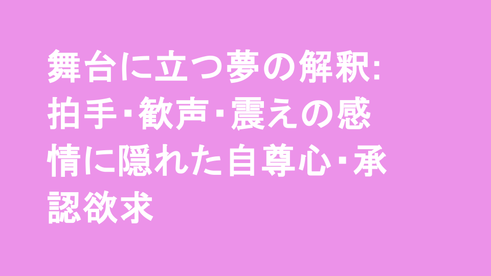 夢の中でステージに立つことは、多くの人にとって特別な体験です。拍手や歓声に包まれる中で、私たちは自らの存在意義を感じ、他者からの承認を強く求める瞬間ともいえます。