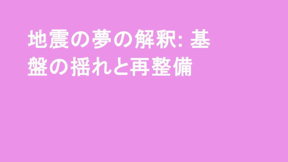 このブログでは、地震の夢が持つ意味や解釈を探ります。夢の中での地震は、どのようなメッセージを私たちに伝えているのでしょうか?それぞれの夢のシーンが持つ象徴を理解することで、私たちの人生における変化や課題に対処する手助けになるかもしれません。