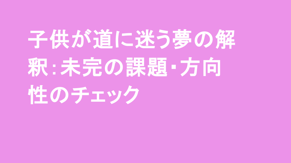 子供が道に迷う夢, 夢占い, 夢の解釈, 未完の課題, 心の成長, 文化的意義, 夢日記, 自己探求, 方向性, 自己理解