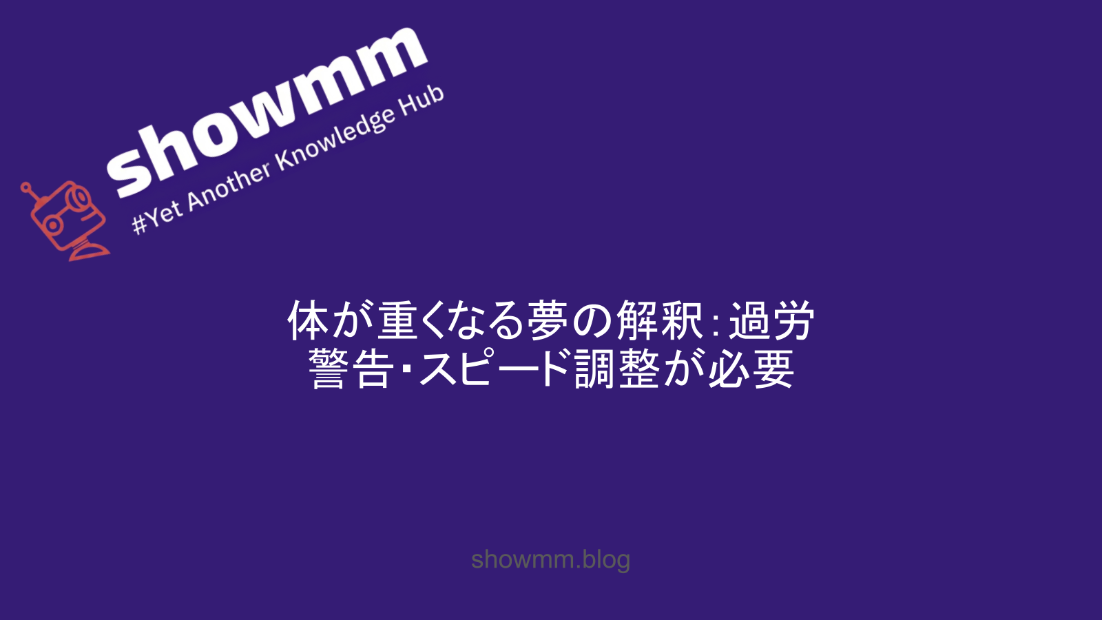 体が重くなる夢は、主に心や身体が疲れていることを示すサインとされています。実は、私も最近この夢を見て、何か大きな変化が必要だと感じました。特に、日常生活の中でストレスや負担が大きいときにこの夢を見ることが多いようです。無理をしている自分に対する警告なのかもしれませんね。
